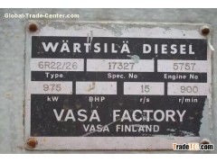Marine diesel engine set WARTSILA 6R22/26 Model:WARTSILA 6R22/26 Diesel Gensets(2nd hand)------qty 3 units Spec:975KW,1125KVA,900RPM,450V,60HZ,YEAR1992